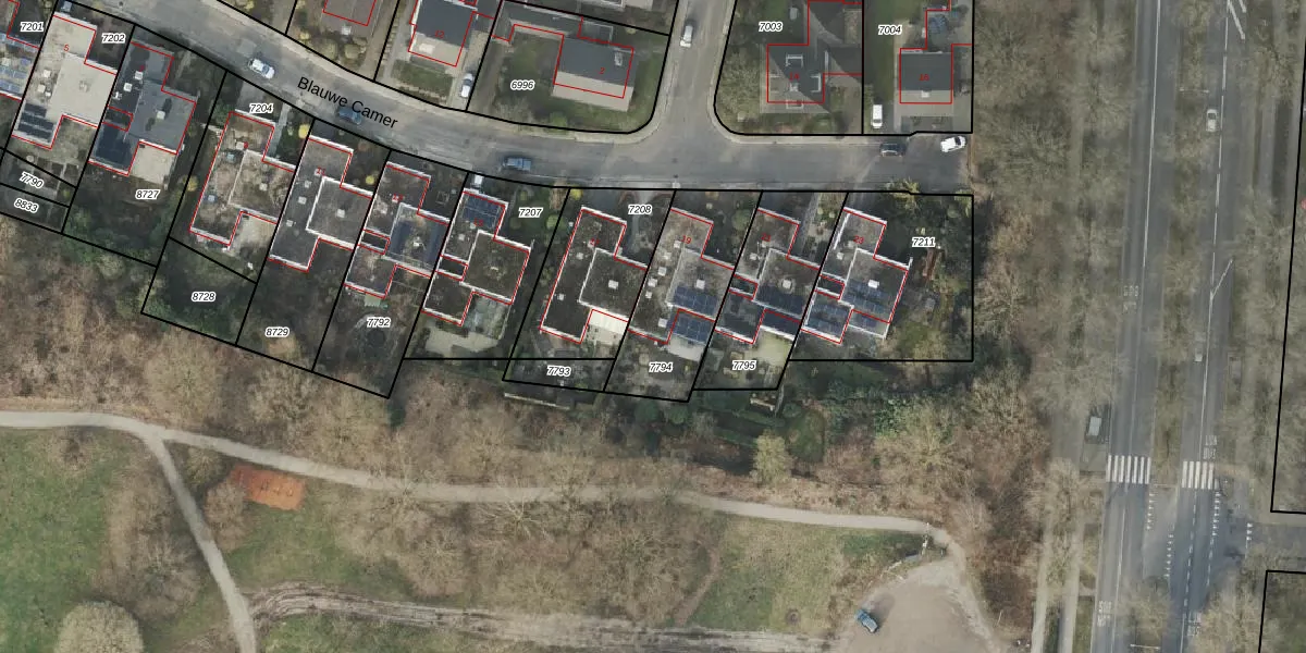 Het perceel waarop Blauwe Camer 19 staat heeft een oppervlakte van 422 m². Dit is een groot perceel. De perceeloppervlakte wordt geregistreerd door het Kadaster. Gedetailleerde informatie over de maten van dit perceel kunt u vinden in het rapport Kadastrale kaart met maatvoering van Blauwe Camer 19.