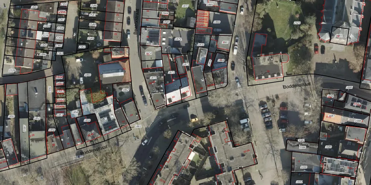 Het perceel waarop Boddenstraat 64 staat heeft een oppervlakte van 201 m². Dit is een middelgroot perceel. De perceeloppervlakte wordt geregistreerd door het Kadaster. Gedetailleerde informatie over de maten van dit perceel kunt u vinden in het rapport Kadastrale kaart met maatvoering van Boddenstraat 64.