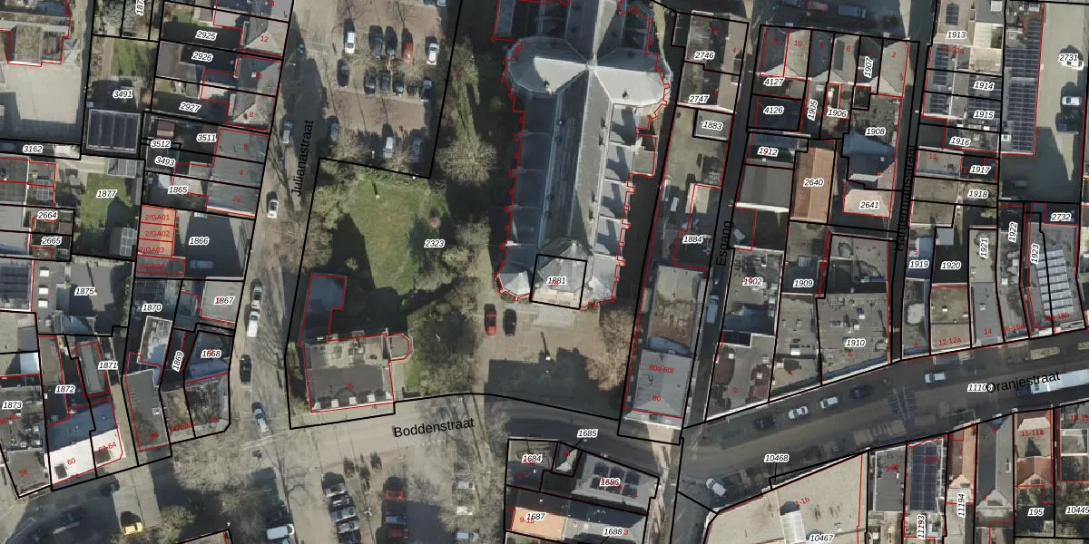 Het perceel waarop Boddenstraat 78 staat heeft een oppervlakte van 86 m². Dit is een klein perceel. De perceeloppervlakte wordt geregistreerd door het Kadaster. Gedetailleerde informatie over de maten van dit perceel kunt u vinden in het rapport Kadastrale kaart met maatvoering van Boddenstraat 78.