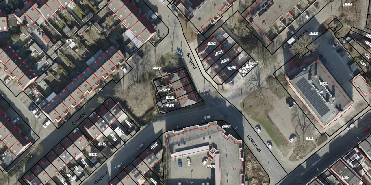 Gebruik de zoekbalk of klik op een perceel voor informatie over de adressen binnen dit perceel.