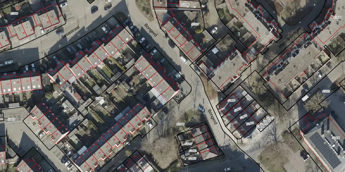 Het perceel waarop Bongerd 9 staat heeft een oppervlakte van 5635 m². Dit is een zeer groot perceel. De perceeloppervlakte wordt geregistreerd door het Kadaster. Gedetailleerde informatie over de maten van dit perceel kunt u vinden in het rapport Kadastrale kaart met maatvoering van Bongerd 9.