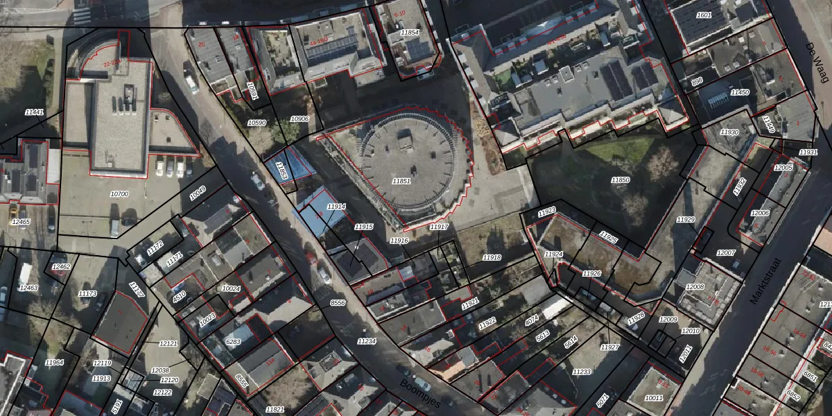 Het perceel waarop Boompjes 4-10 staat heeft een oppervlakte van 2567 m². Dit is een zeer groot perceel. De perceeloppervlakte wordt geregistreerd door het Kadaster. Gedetailleerde informatie over de maten van dit perceel kunt u vinden in het rapport Kadastrale kaart met maatvoering van Boompjes 4-10.