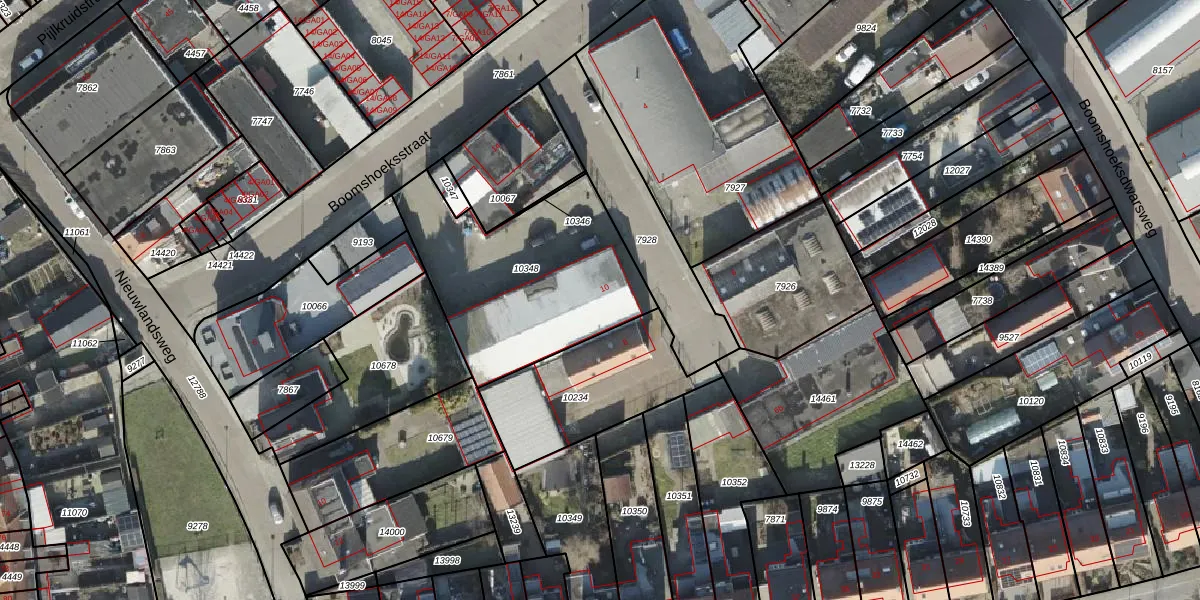 Het perceel waarop Boomshoeksstraat 10 staat heeft een oppervlakte van 880 m². Dit is een groot perceel. De perceeloppervlakte wordt geregistreerd door het Kadaster. Gedetailleerde informatie over de maten van dit perceel kunt u vinden in het rapport Kadastrale kaart met maatvoering van Boomshoeksstraat 10.