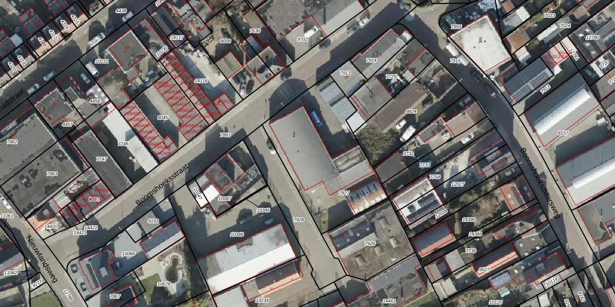 Het perceel waarop Boomshoeksstraat 4 staat heeft een oppervlakte van 1107 m². Dit is een zeer groot perceel. De perceeloppervlakte wordt geregistreerd door het Kadaster. Gedetailleerde informatie over de maten van dit perceel kunt u vinden in het rapport Kadastrale kaart met maatvoering van Boomshoeksstraat 4.