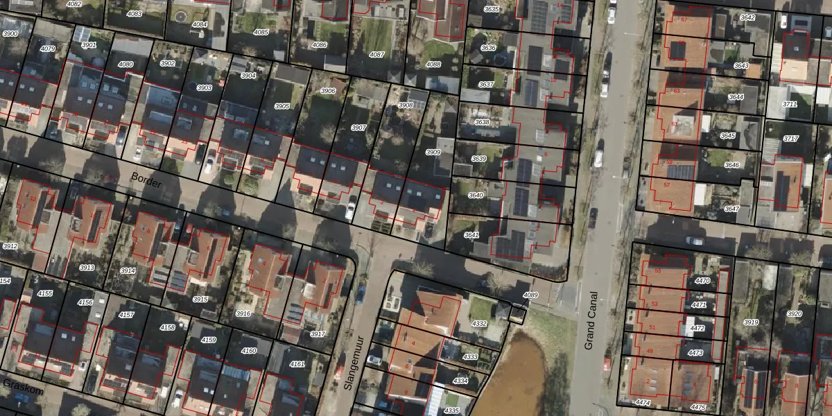 Het perceel waarop Border 1 staat heeft een oppervlakte van 379 m². Dit is een groot perceel. De perceeloppervlakte wordt geregistreerd door het Kadaster. Gedetailleerde informatie over de maten van dit perceel kunt u vinden in het rapport Kadastrale kaart met maatvoering van Border 1.