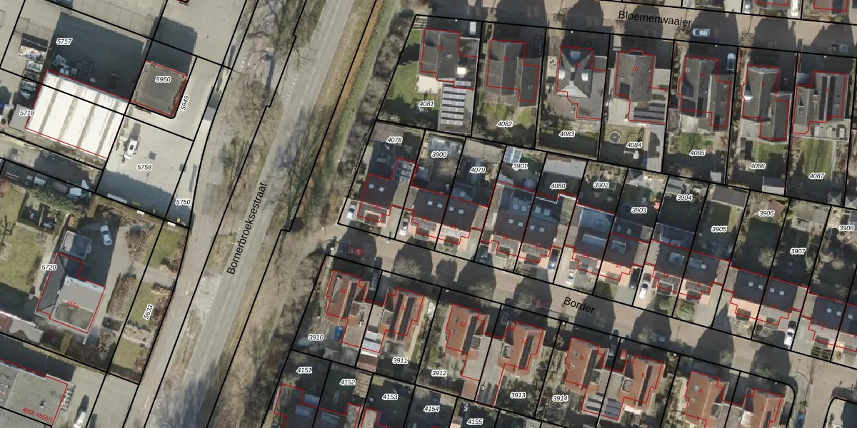Gebruik de zoekbalk of klik op een perceel voor informatie over de adressen binnen dit perceel.