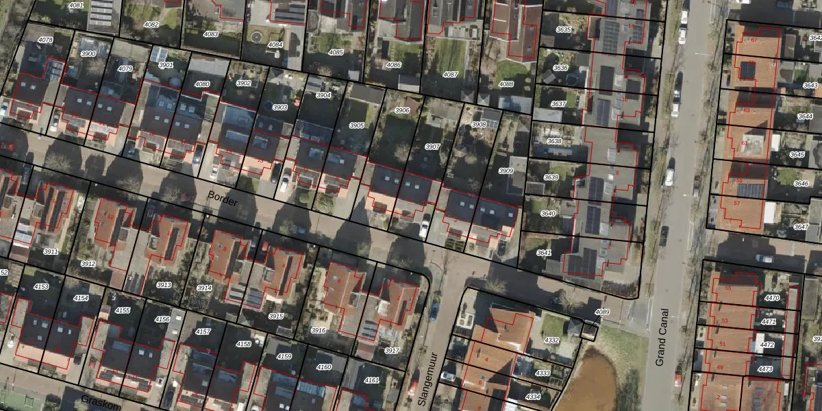 Het perceel waarop Border 5 staat heeft een oppervlakte van 335 m². Dit is een groot perceel. De perceeloppervlakte wordt geregistreerd door het Kadaster. Gedetailleerde informatie over de maten van dit perceel kunt u vinden in het rapport Kadastrale kaart met maatvoering van Border 5.