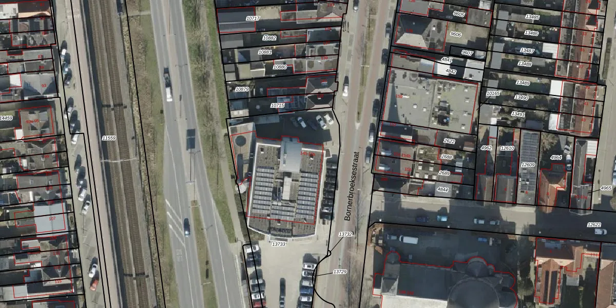 Bornerbroeksestraat 145 is gelegen op kadastraal perceel AML01H13733. Deze kadastrale aanduiding is uniek en wordt gebruikt door het Kadaster om eigendomsrechten en andere zakelijke rechten vast te leggen. Het perceel maakt onderdeel uit van de kadastrale gemeente Ambt-Almelo.