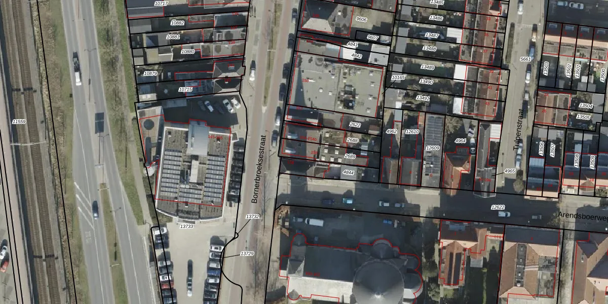 Gebruik de zoekbalk of klik op een perceel voor informatie over de adressen binnen dit perceel.
