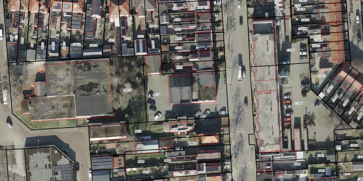 Gebruik de zoekbalk of klik op een perceel voor informatie over de adressen binnen dit perceel.