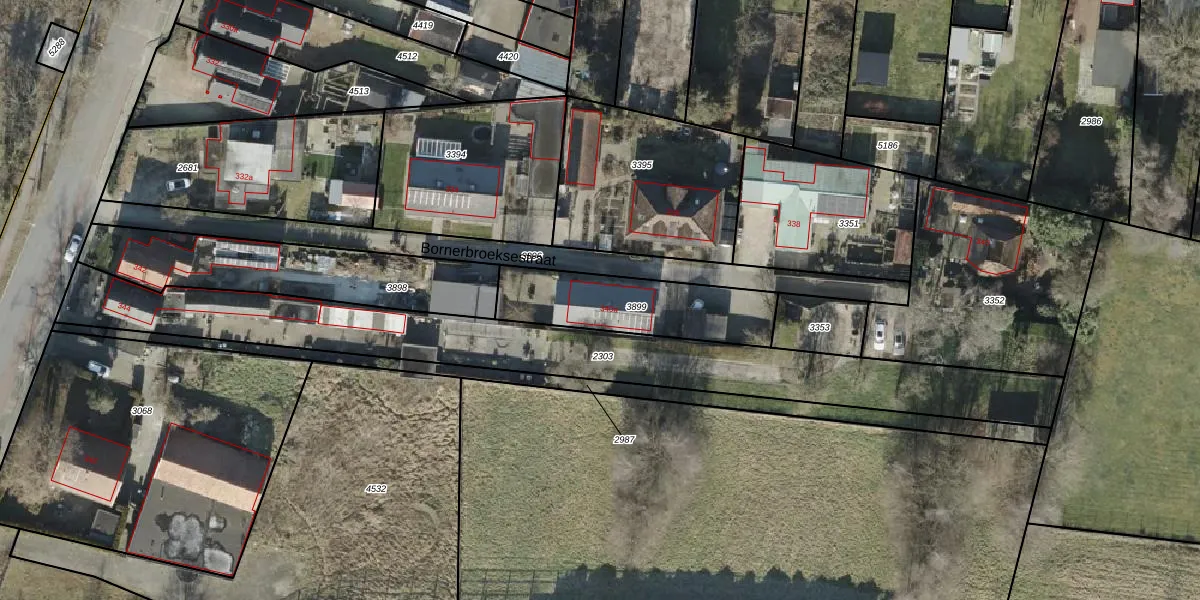 Bornerbroeksestraat 340-a is gelegen op kadastraal perceel AML01G3899. Deze kadastrale aanduiding is uniek en wordt gebruikt door het Kadaster om eigendomsrechten en andere zakelijke rechten vast te leggen. Het perceel maakt onderdeel uit van de kadastrale gemeente Ambt-Almelo.
