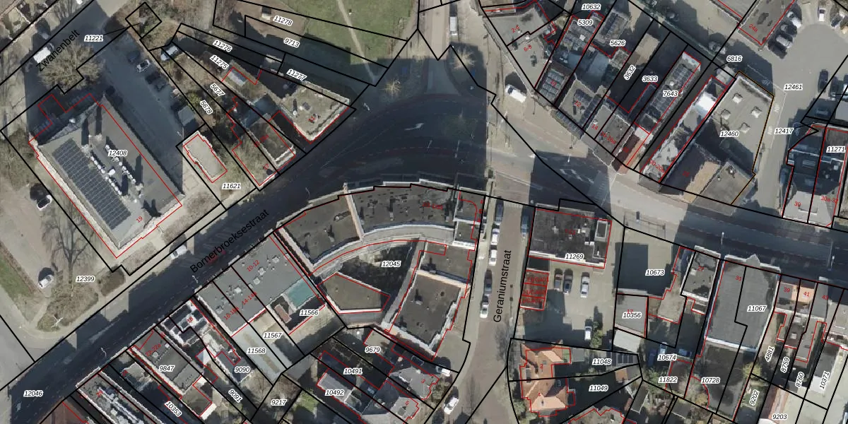 Bornsestraat 1-25 is gelegen op kadastraal perceel AML02B12045. Deze kadastrale aanduiding is uniek en wordt gebruikt door het Kadaster om eigendomsrechten en andere zakelijke rechten vast te leggen. Het perceel maakt onderdeel uit van de kadastrale gemeente Stad-Almelo.