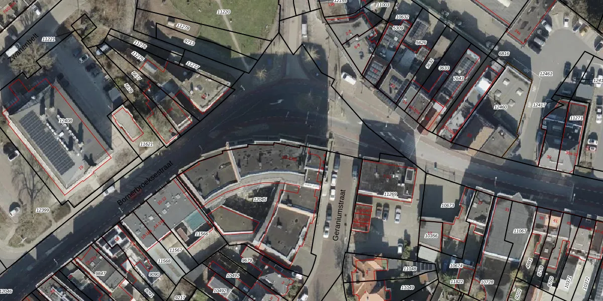 Het perceel waarop Bornsestraat 1-9 staat heeft een oppervlakte van 1415 m². Dit is een zeer groot perceel. De perceeloppervlakte wordt geregistreerd door het Kadaster. Gedetailleerde informatie over de maten van dit perceel kunt u vinden in het rapport Kadastrale kaart met maatvoering van Bornsestraat 1-9.