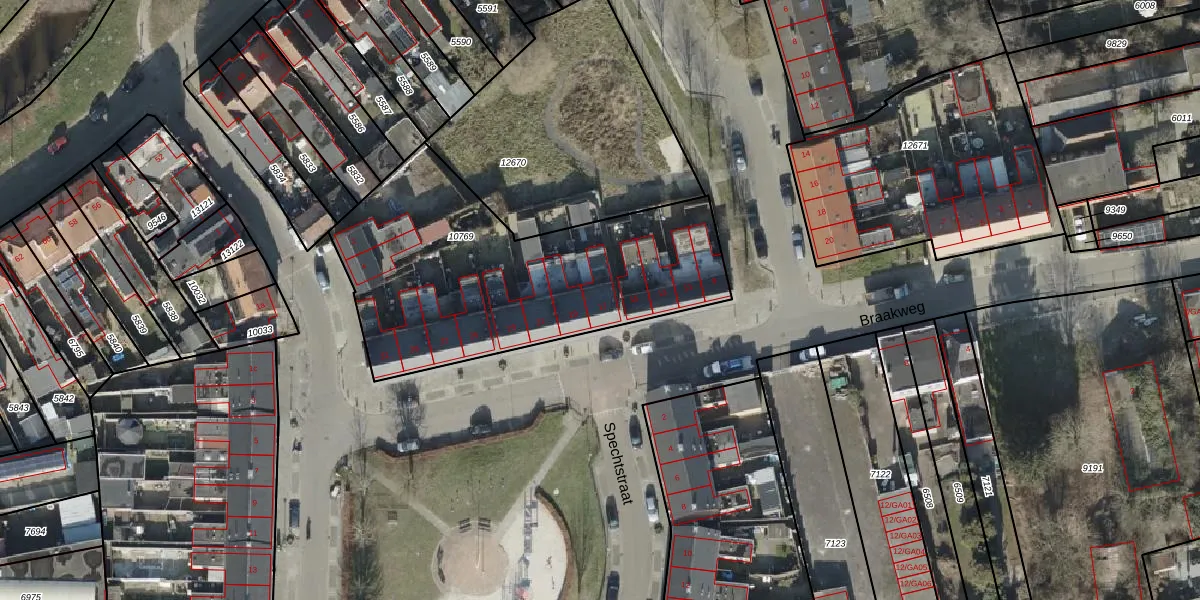 Het perceel waarop Braakweg 17 staat heeft een oppervlakte van 1445 m². Dit is een zeer groot perceel. De perceeloppervlakte wordt geregistreerd door het Kadaster. Gedetailleerde informatie over de maten van dit perceel kunt u vinden in het rapport Kadastrale kaart met maatvoering van Braakweg 17.