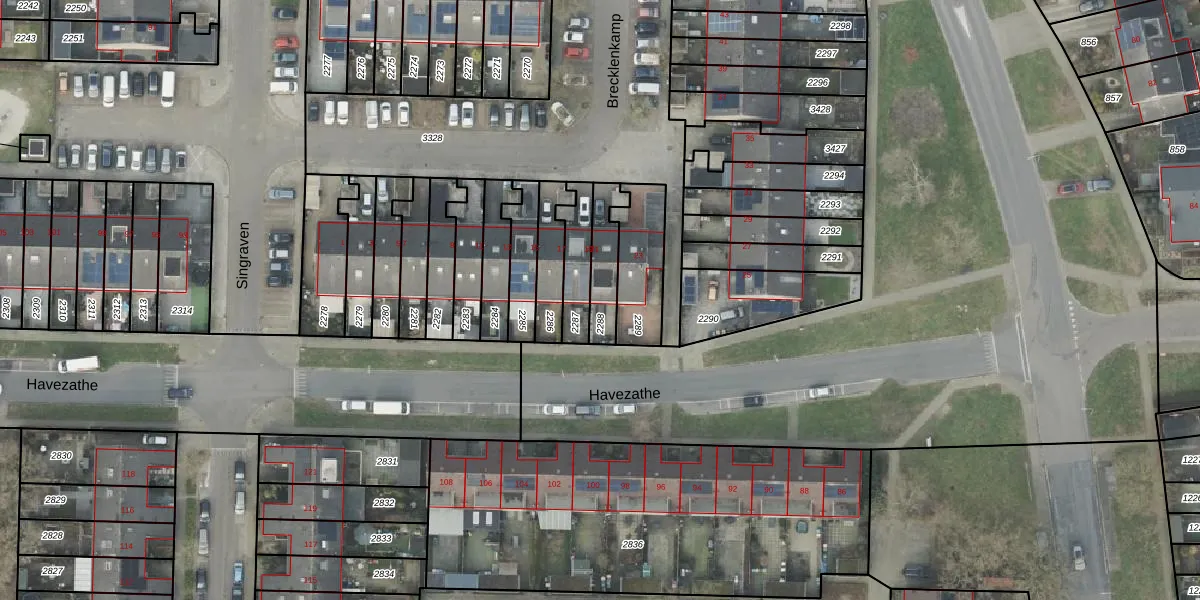Gebruik de zoekbalk of klik op een perceel voor informatie over de adressen binnen dit perceel.