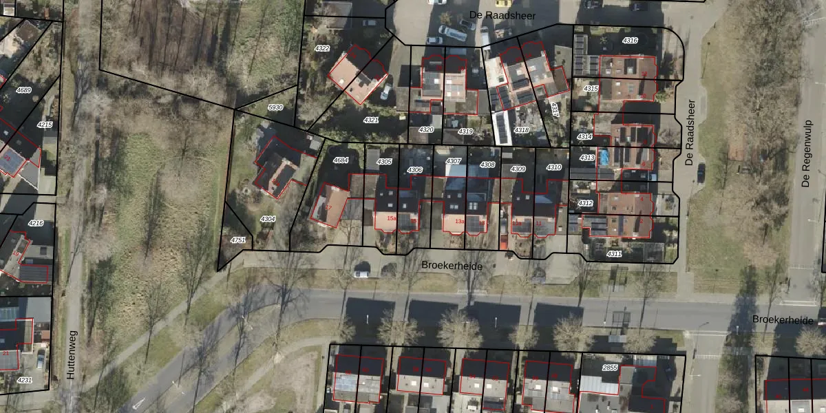 Het perceel waarop Broekerheide 15 staat heeft een oppervlakte van 213 m². Dit is een middelgroot perceel. De perceeloppervlakte wordt geregistreerd door het Kadaster. Gedetailleerde informatie over de maten van dit perceel kunt u vinden in het rapport Kadastrale kaart met maatvoering van Broekerheide 15.