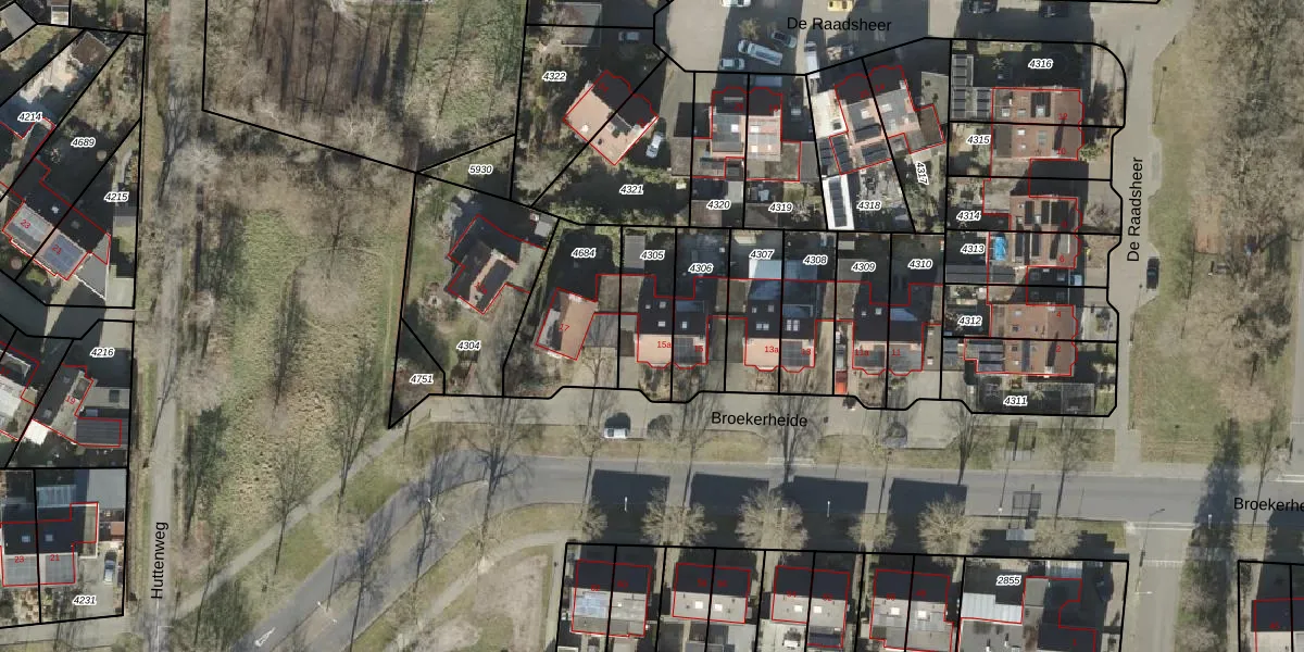 Gebruik de zoekbalk of klik op een perceel voor informatie over de adressen binnen dit perceel.