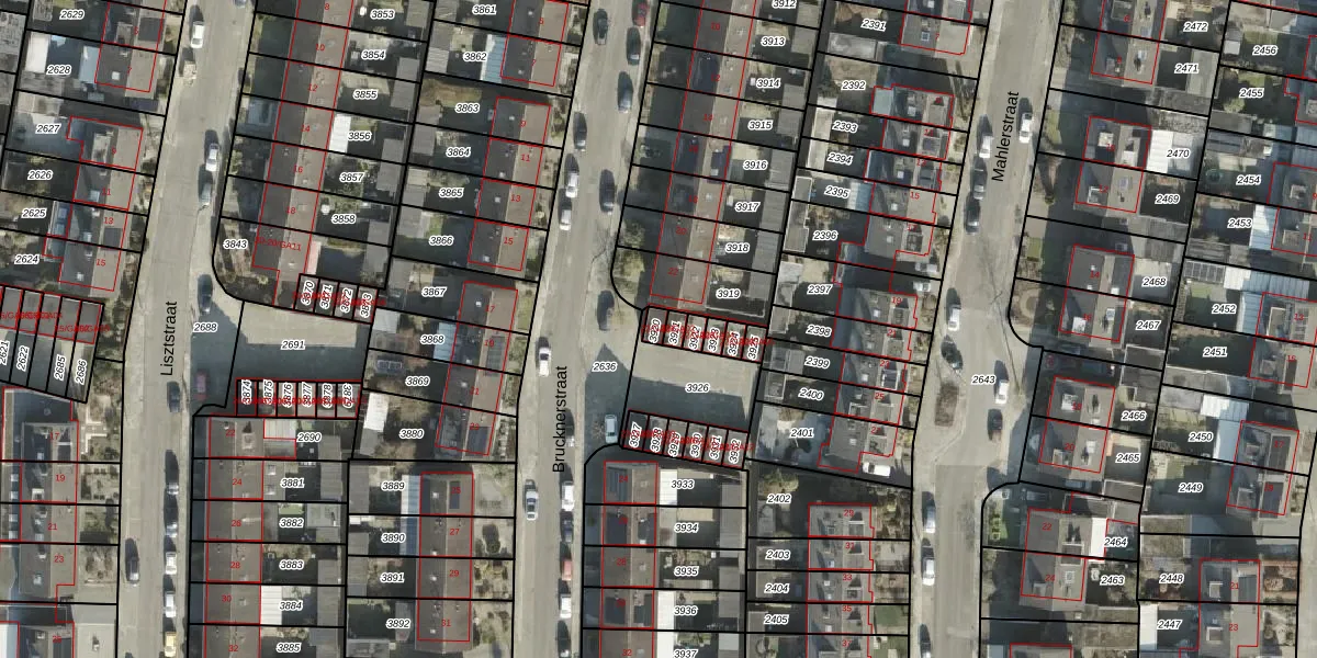 Gebruik de zoekbalk of klik op een perceel voor informatie over de adressen binnen dit perceel.