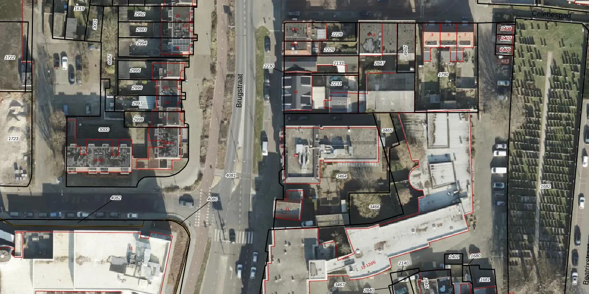Het perceel waarop Brugstraat 33 staat heeft een oppervlakte van 1216 m². Dit is een zeer groot perceel. De perceeloppervlakte wordt geregistreerd door het Kadaster. Gedetailleerde informatie over de maten van dit perceel kunt u vinden in het rapport Kadastrale kaart met maatvoering van Brugstraat 33.