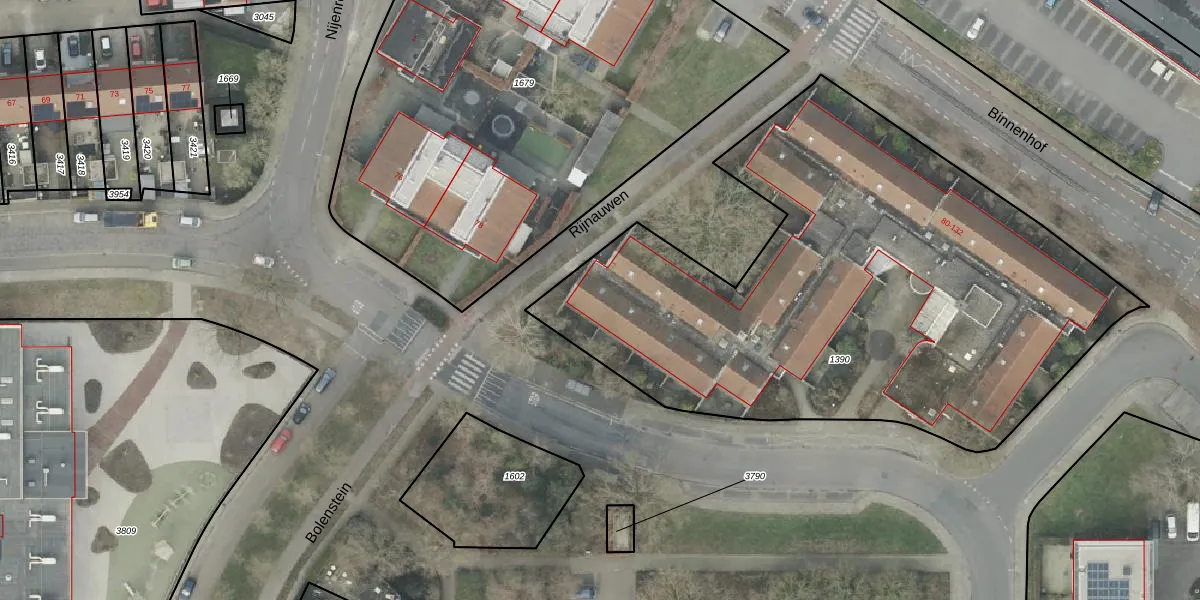 Het perceel waarop Burcht 112 staat heeft een oppervlakte van 3318 m². Dit is een zeer groot perceel. De perceeloppervlakte wordt geregistreerd door het Kadaster. Gedetailleerde informatie over de maten van dit perceel kunt u vinden in het rapport Kadastrale kaart met maatvoering van Burcht 112.