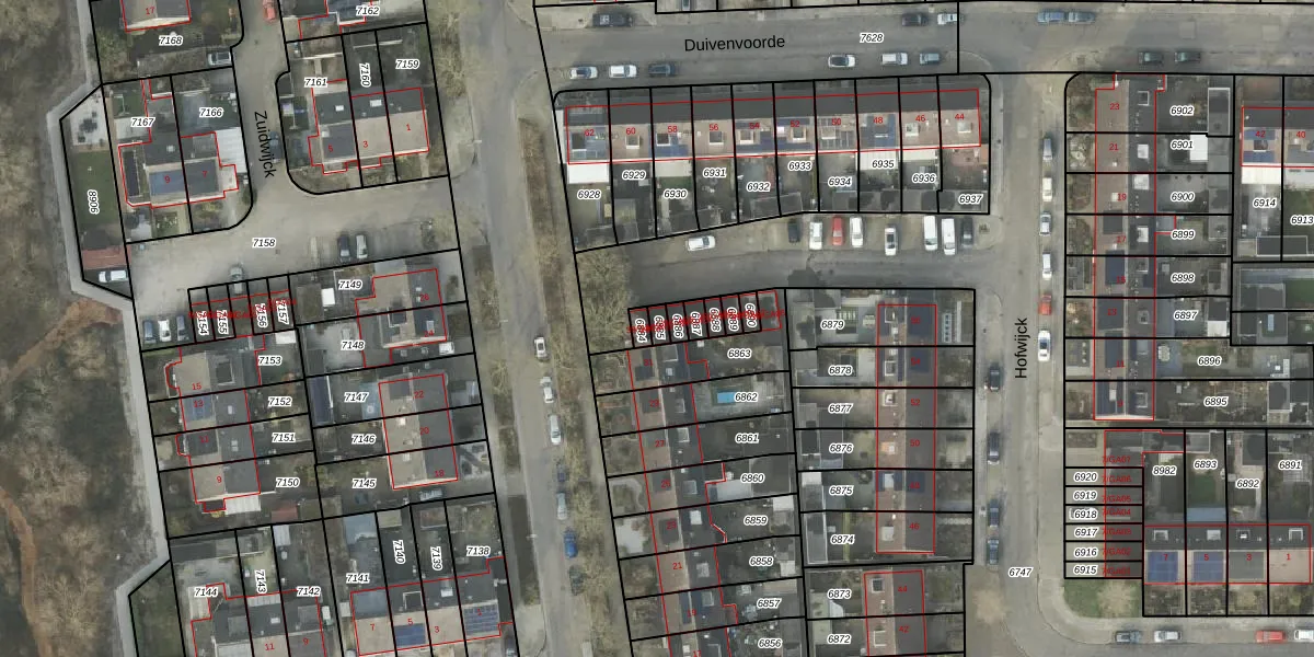 Gebruik de zoekbalk of klik op een perceel voor informatie over de adressen binnen dit perceel.