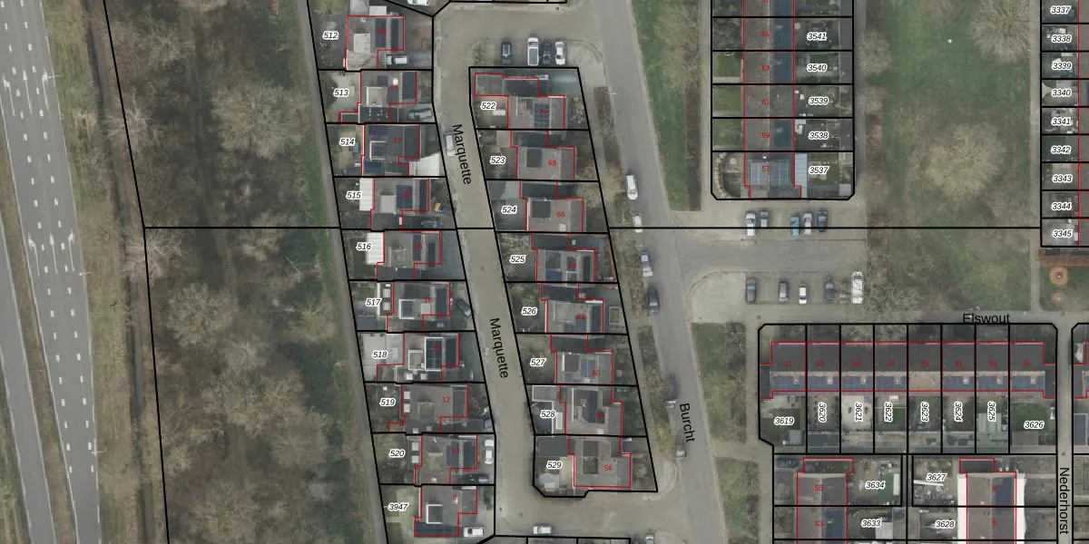 Gebruik de zoekbalk of klik op een perceel voor informatie over de adressen binnen dit perceel.