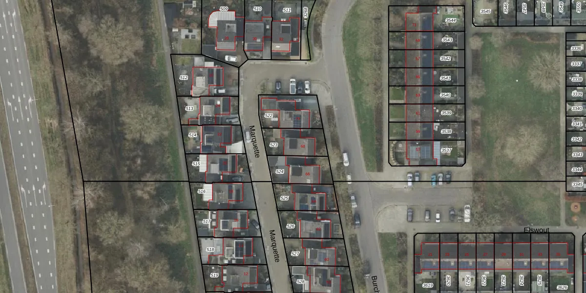 Gebruik de zoekbalk of klik op een perceel voor informatie over de adressen binnen dit perceel.
