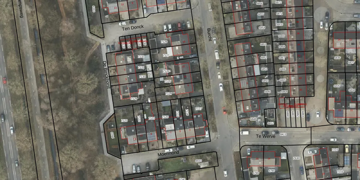 Gebruik de zoekbalk of klik op een perceel voor informatie over de adressen binnen dit perceel.