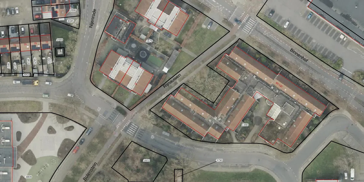 Het perceel waarop Burcht 82 staat heeft een oppervlakte van 3318 m². Dit is een zeer groot perceel. De perceeloppervlakte wordt geregistreerd door het Kadaster. Gedetailleerde informatie over de maten van dit perceel kunt u vinden in het rapport Kadastrale kaart met maatvoering van Burcht 82.