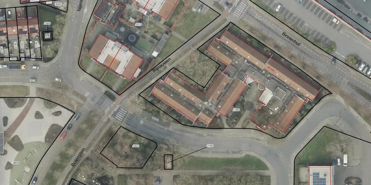 Het perceel waarop Burcht 98 staat heeft een oppervlakte van 3318 m². Dit is een zeer groot perceel. De perceeloppervlakte wordt geregistreerd door het Kadaster. Gedetailleerde informatie over de maten van dit perceel kunt u vinden in het rapport Kadastrale kaart met maatvoering van Burcht 98.