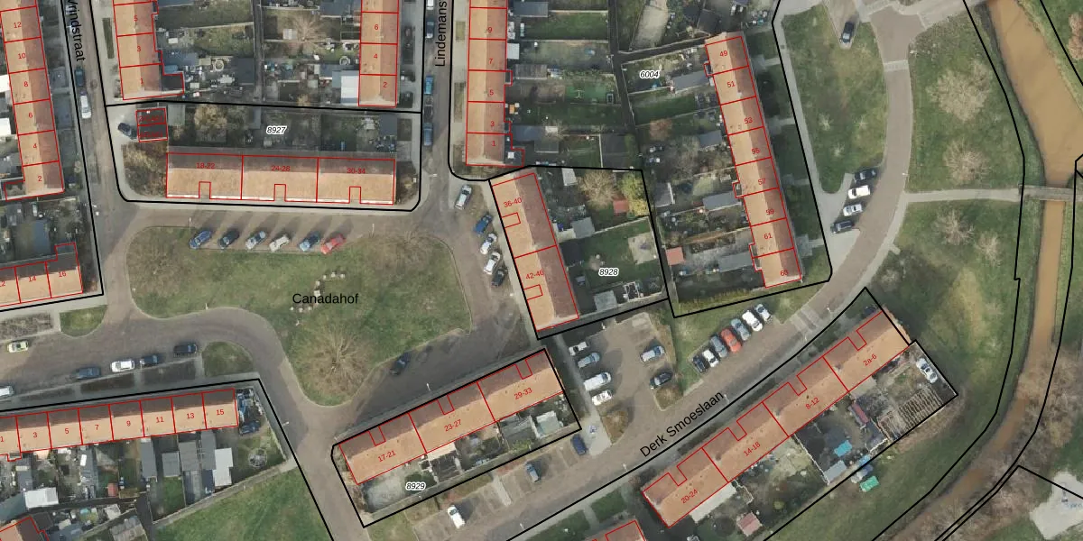 Het perceel waarop Canadahof 42 staat heeft een oppervlakte van 760 m². Dit is een groot perceel. De perceeloppervlakte wordt geregistreerd door het Kadaster. Gedetailleerde informatie over de maten van dit perceel kunt u vinden in het rapport Kadastrale kaart met maatvoering van Canadahof 42.