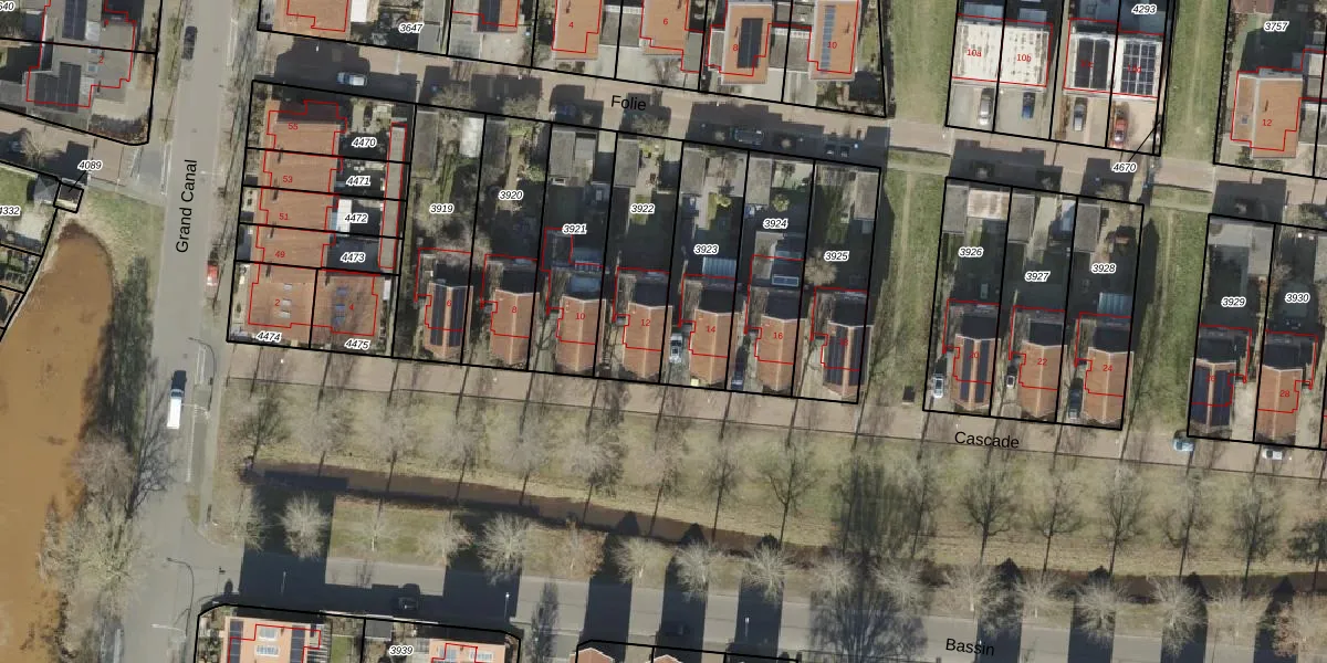 Het perceel waarop Cascade 12 staat heeft een oppervlakte van 371 m². Dit is een groot perceel. De perceeloppervlakte wordt geregistreerd door het Kadaster. Gedetailleerde informatie over de maten van dit perceel kunt u vinden in het rapport Kadastrale kaart met maatvoering van Cascade 12.