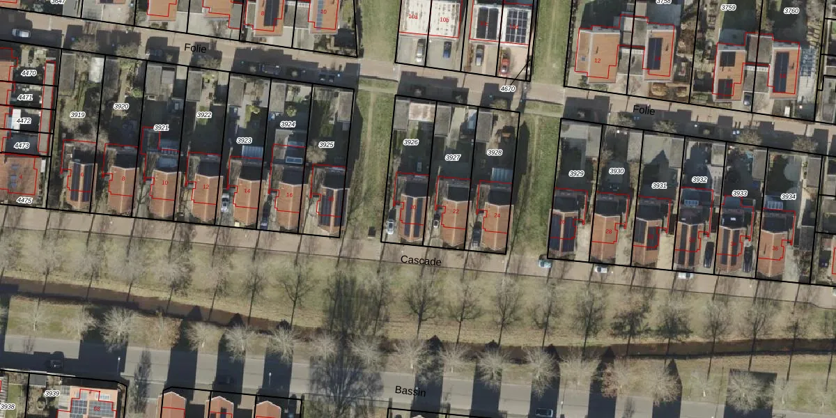 Het perceel waarop Cascade 20 staat heeft een oppervlakte van 349 m². Dit is een groot perceel. De perceeloppervlakte wordt geregistreerd door het Kadaster. Gedetailleerde informatie over de maten van dit perceel kunt u vinden in het rapport Kadastrale kaart met maatvoering van Cascade 20.