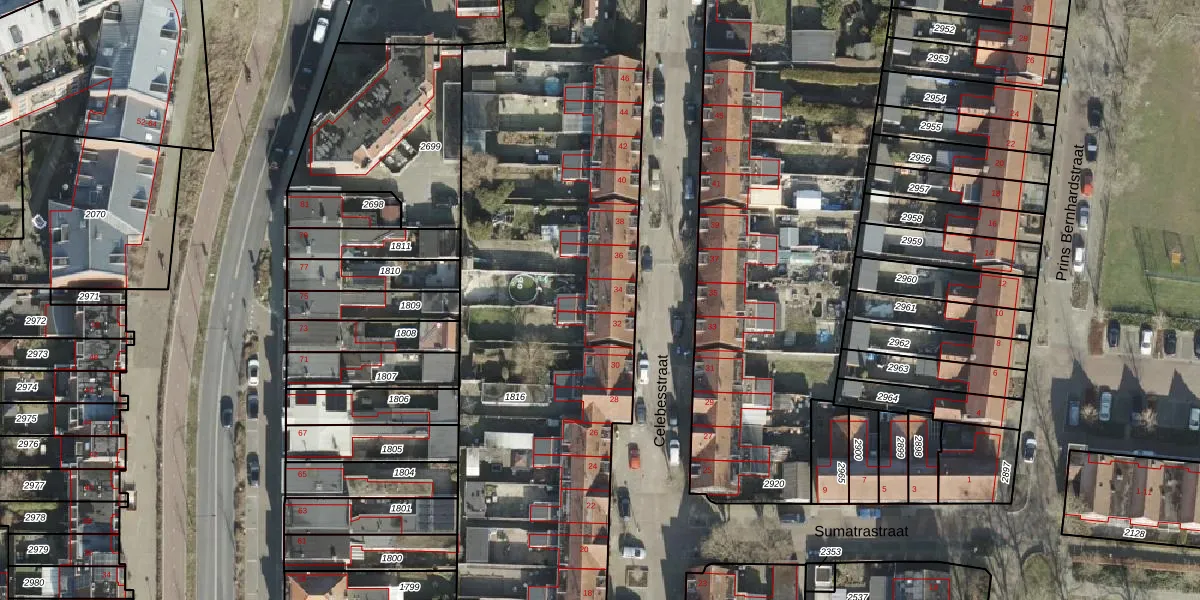 Het perceel waarop Celebesstraat 34 staat heeft een oppervlakte van 4079 m². Dit is een zeer groot perceel. De perceeloppervlakte wordt geregistreerd door het Kadaster. Gedetailleerde informatie over de maten van dit perceel kunt u vinden in het rapport Kadastrale kaart met maatvoering van Celebesstraat 34.