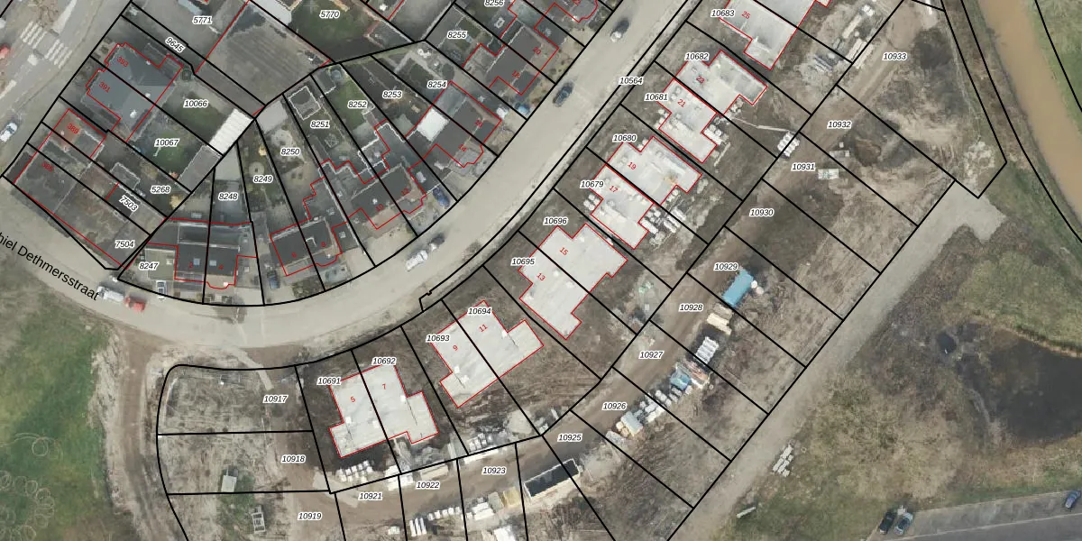 Het perceel waarop Chiel Dethmersstraat 13 staat heeft een oppervlakte van 306 m². Dit is een groot perceel. De perceeloppervlakte wordt geregistreerd door het Kadaster. Gedetailleerde informatie over de maten van dit perceel kunt u vinden in het rapport Kadastrale kaart met maatvoering van Chiel Dethmersstraat 13.