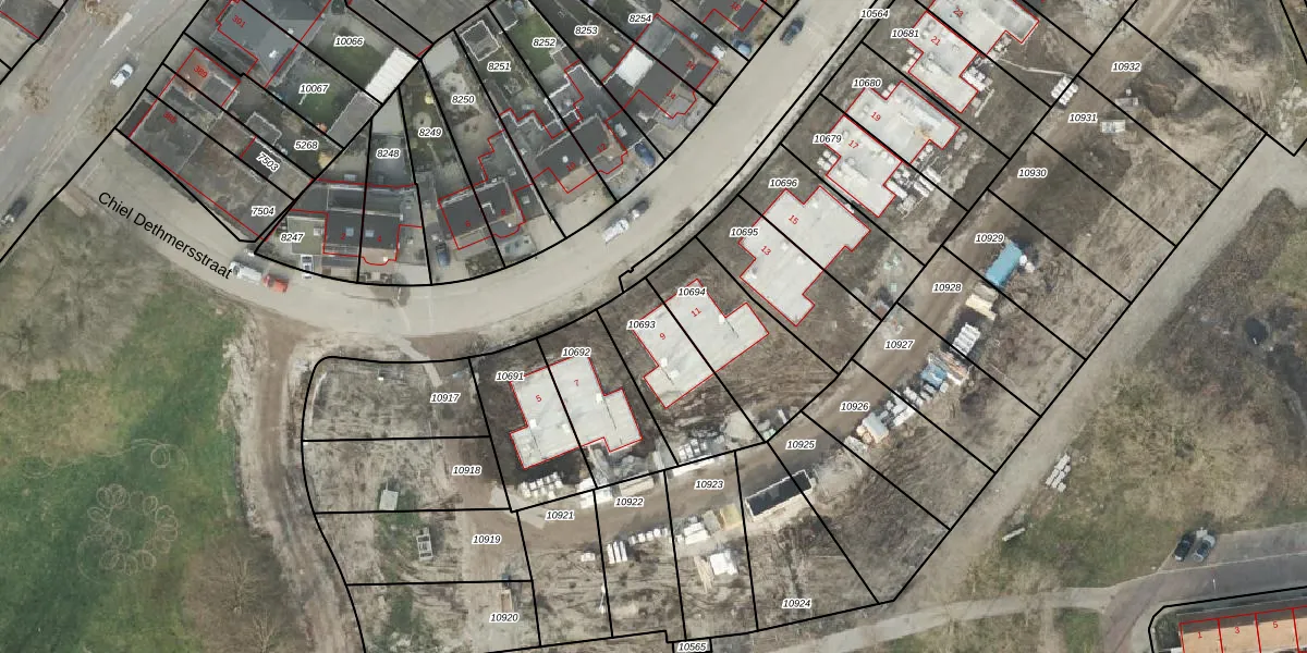 Het perceel waarop Chiel Dethmersstraat 9 staat heeft een oppervlakte van 320 m². Dit is een groot perceel. De perceeloppervlakte wordt geregistreerd door het Kadaster. Gedetailleerde informatie over de maten van dit perceel kunt u vinden in het rapport Kadastrale kaart met maatvoering van Chiel Dethmersstraat 9.
