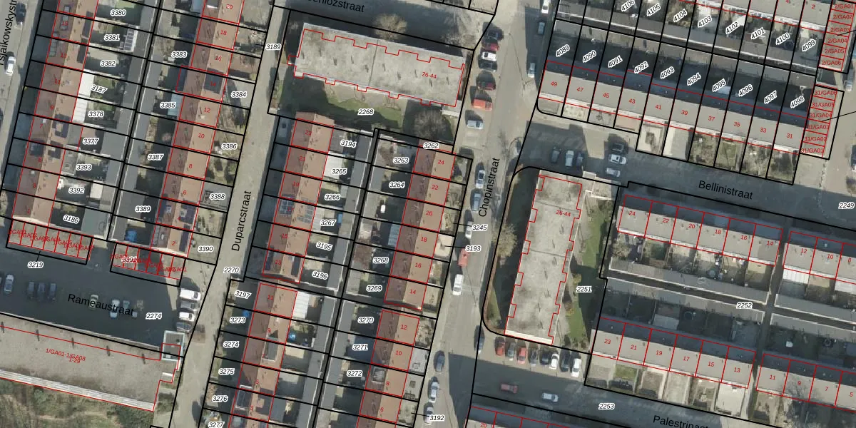 Het perceel waarop Chopinstraat 20 staat heeft een oppervlakte van 142 m². Dit is een middelgroot perceel. De perceeloppervlakte wordt geregistreerd door het Kadaster. Gedetailleerde informatie over de maten van dit perceel kunt u vinden in het rapport Kadastrale kaart met maatvoering van Chopinstraat 20.