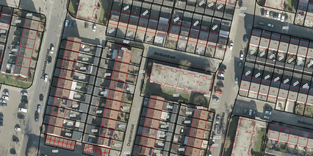 Het perceel waarop Chopinstraat 34 staat heeft een oppervlakte van 1070 m². Dit is een zeer groot perceel. De perceeloppervlakte wordt geregistreerd door het Kadaster. Gedetailleerde informatie over de maten van dit perceel kunt u vinden in het rapport Kadastrale kaart met maatvoering van Chopinstraat 34.