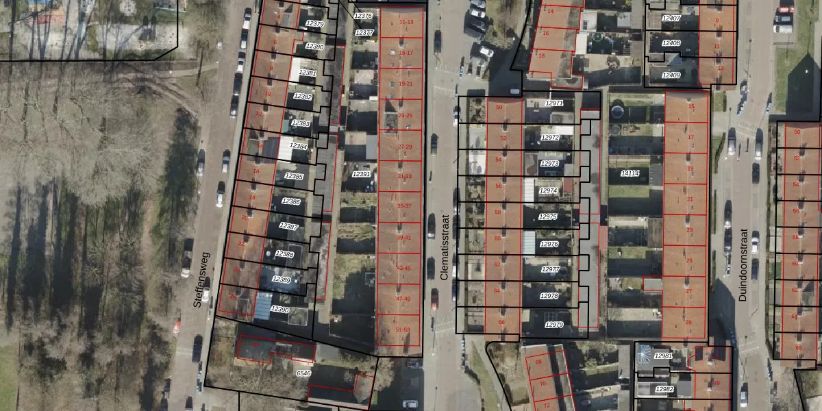 Het perceel waarop Clematisstraat 35 staat heeft een oppervlakte van 2115 m². Dit is een zeer groot perceel. De perceeloppervlakte wordt geregistreerd door het Kadaster. Gedetailleerde informatie over de maten van dit perceel kunt u vinden in het rapport Kadastrale kaart met maatvoering van Clematisstraat 35.