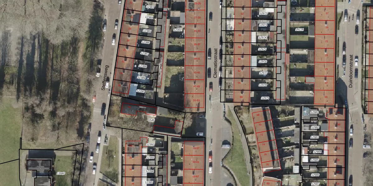 Het perceel waarop Clematisstraat 49 staat heeft een oppervlakte van 2115 m². Dit is een zeer groot perceel. De perceeloppervlakte wordt geregistreerd door het Kadaster. Gedetailleerde informatie over de maten van dit perceel kunt u vinden in het rapport Kadastrale kaart met maatvoering van Clematisstraat 49.
