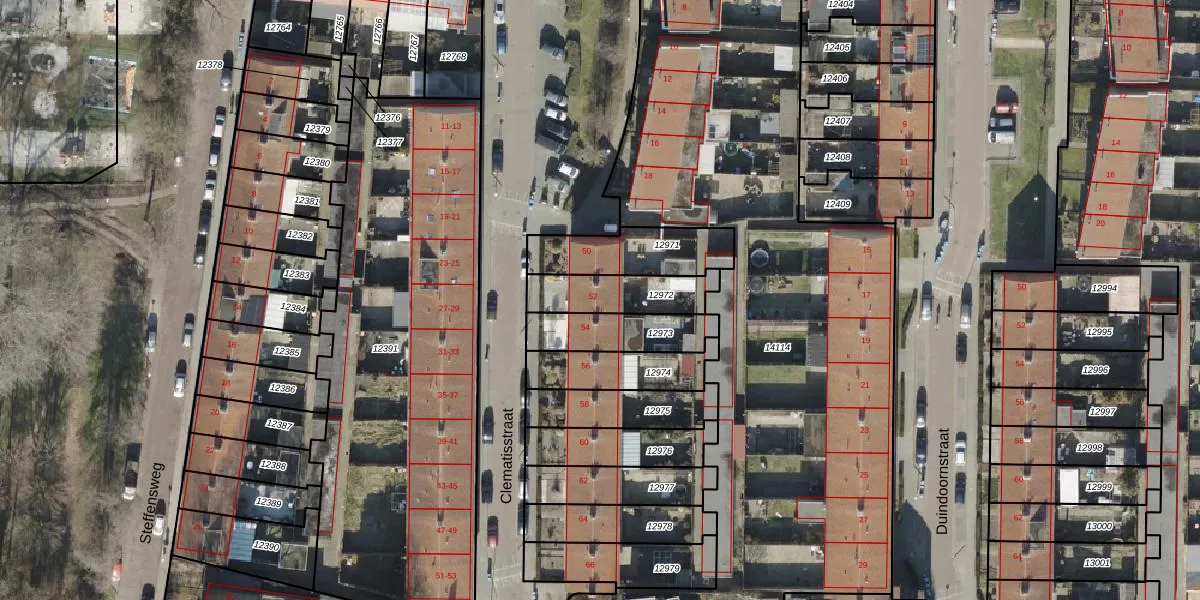 Clematisstraat 52 is gelegen op kadastraal perceel AML01H12972. Deze kadastrale aanduiding is uniek en wordt gebruikt door het Kadaster om eigendomsrechten en andere zakelijke rechten vast te leggen. Het perceel maakt onderdeel uit van de kadastrale gemeente Ambt-Almelo.