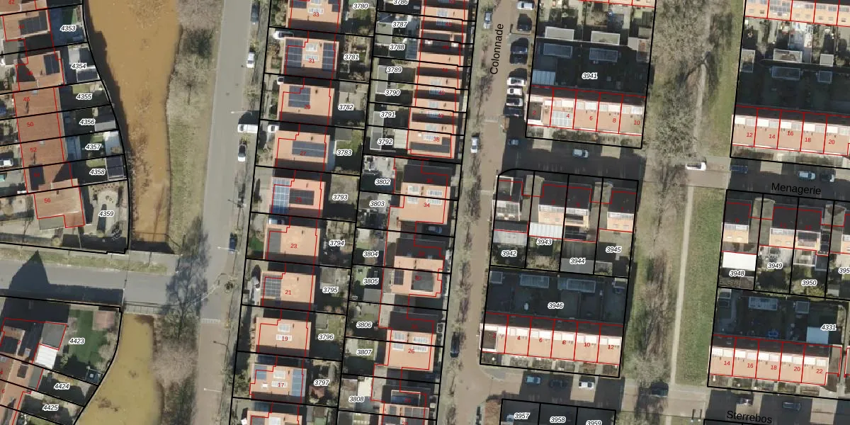 Het perceel waarop Colonnade 34 staat heeft een oppervlakte van 202 m². Dit is een middelgroot perceel. De perceeloppervlakte wordt geregistreerd door het Kadaster. Gedetailleerde informatie over de maten van dit perceel kunt u vinden in het rapport Kadastrale kaart met maatvoering van Colonnade 34.