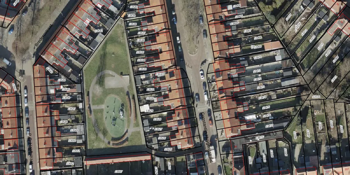 Het perceel waarop Constantijn Huygensstraat 21 staat heeft een oppervlakte van 166 m². Dit is een middelgroot perceel. De perceeloppervlakte wordt geregistreerd door het Kadaster. Gedetailleerde informatie over de maten van dit perceel kunt u vinden in het rapport Kadastrale kaart met maatvoering van Constantijn Huygensstraat 21.