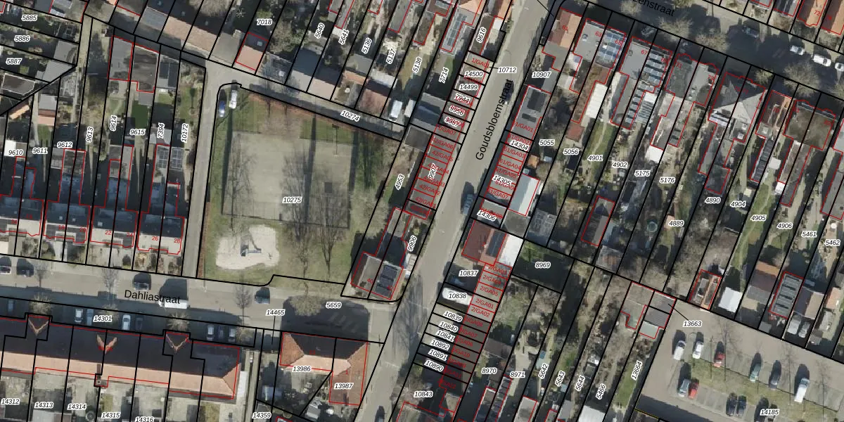 Dahliastraat 42-GA07 is gelegen op kadastraal perceel AML01H9906. Deze kadastrale aanduiding is uniek en wordt gebruikt door het Kadaster om eigendomsrechten en andere zakelijke rechten vast te leggen. Het perceel maakt onderdeel uit van de kadastrale gemeente Ambt-Almelo.