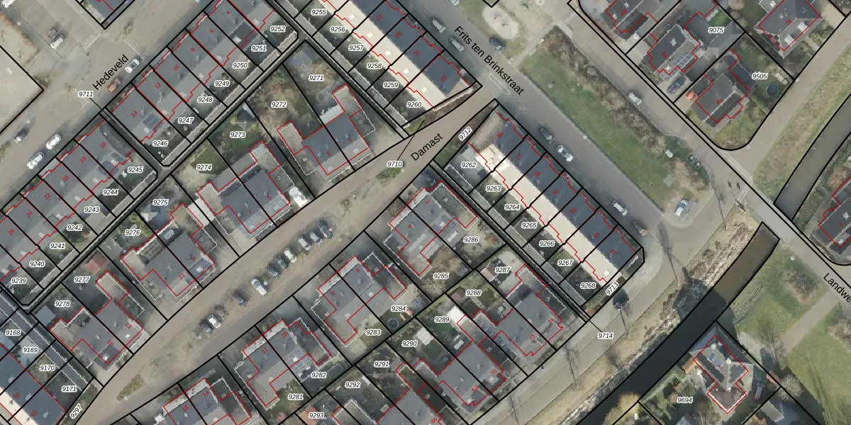 Het perceel waarop Damast 2 staat heeft een oppervlakte van 263 m². Dit is een middelgroot perceel. De perceeloppervlakte wordt geregistreerd door het Kadaster. Gedetailleerde informatie over de maten van dit perceel kunt u vinden in het rapport Kadastrale kaart met maatvoering van Damast 2.