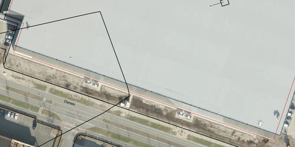 Het perceel waarop Darwin 9 staat heeft een oppervlakte van 3,7 ha. Dit is een zeer groot perceel. De perceeloppervlakte wordt geregistreerd door het Kadaster. Gedetailleerde informatie over de maten van dit perceel kunt u vinden in het rapport Kadastrale kaart met maatvoering van Darwin 9.