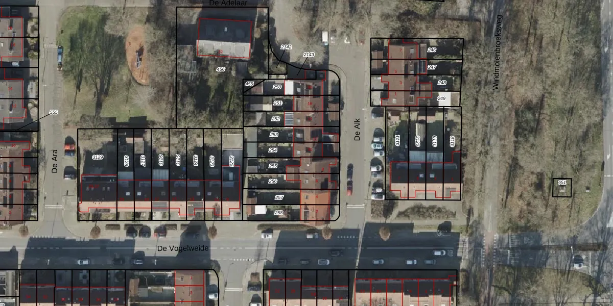 Gebruik de zoekbalk of klik op een perceel voor informatie over de adressen binnen dit perceel.