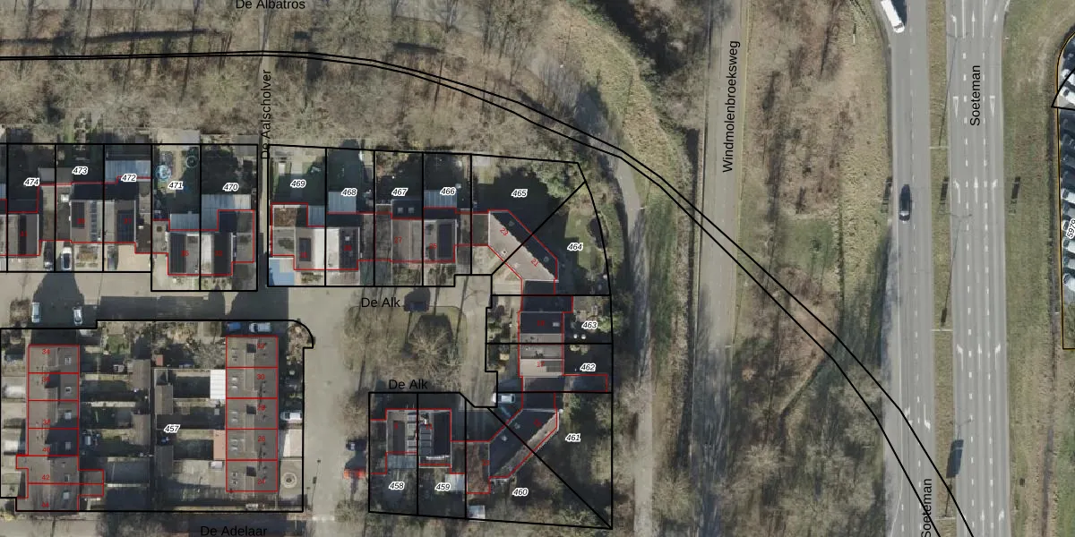 Gebruik de zoekbalk of klik op een perceel voor informatie over de adressen binnen dit perceel.