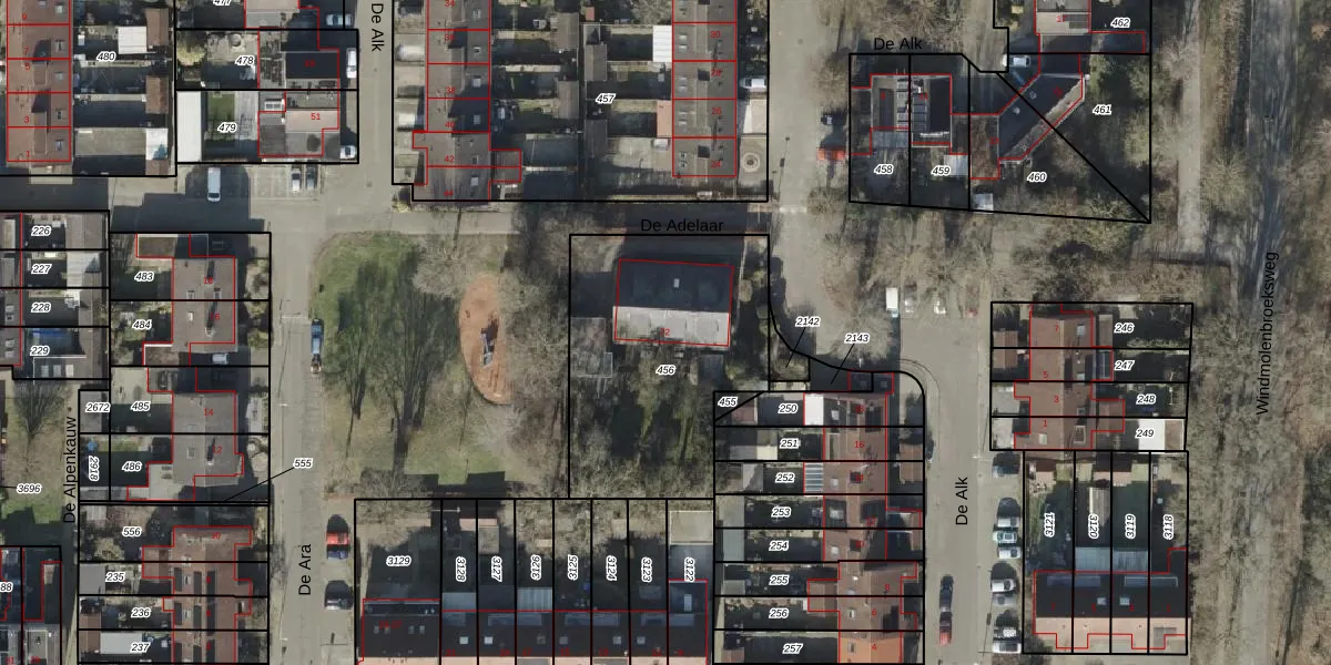 Het perceel waarop De Alk 22 staat heeft een oppervlakte van 1059 m². Dit is een zeer groot perceel. De perceeloppervlakte wordt geregistreerd door het Kadaster. Gedetailleerde informatie over de maten van dit perceel kunt u vinden in het rapport Kadastrale kaart met maatvoering van De Alk 22.