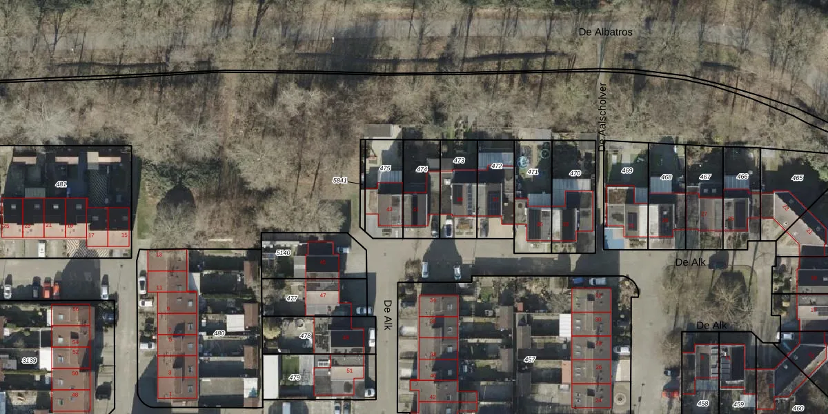 Het perceel waarop De Alk 41 staat heeft een oppervlakte van 214 m². Dit is een middelgroot perceel. De perceeloppervlakte wordt geregistreerd door het Kadaster. Gedetailleerde informatie over de maten van dit perceel kunt u vinden in het rapport Kadastrale kaart met maatvoering van De Alk 41.